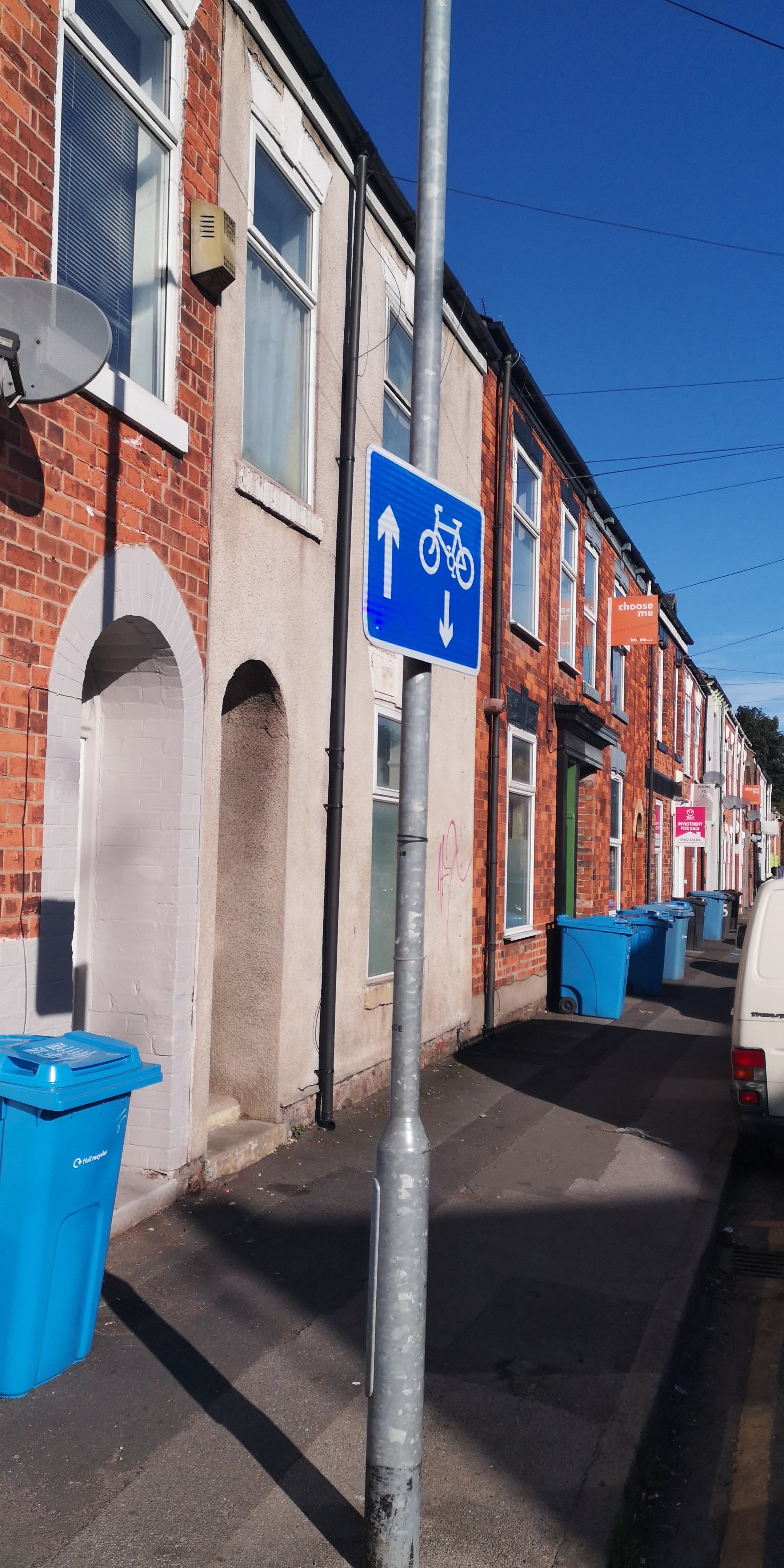 There are many low-traffic streets in Hull, good for cycling, which I use regularly for shopping, the school run, and recreation. I have been able to discover these routes because I have lived in Hull for a while, or by using the very useful City Council cycle maps. Often, however, these routes are hardly signposted, if at all, meaning that they are difficult to follow, or even to find, particularly for those new to the city, such as students. Adding extensive and highly visible cycle-specific signage (preferably in a different colour, such as blue) would make these routes much more prominent and cycle-friendly, especially for newcomers. The cost would be very little, since there would be hardly any need to upgrade the route beyond adding signage. Most existing road signs are, of course, not very useful to cyclists, because they mainly direct traffic onto main roads, when cyclists need almost exactly the opposite type of signage – indicating the same general direction of travel, but onto minor roads or cycle routes. It is also worth remembering that pedestrians can also read, and use, cycle signs, and that such signs can be intentionally dual-purpose.